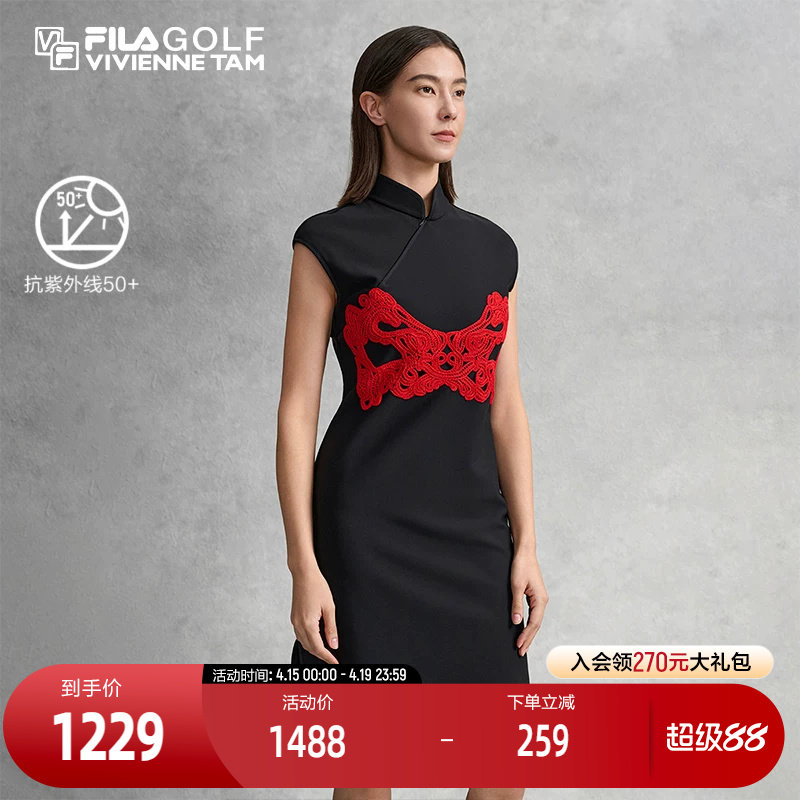 FILA 斐乐官方女子针织连衣裙2026春季新款高尔夫运动裙子旗袍裙