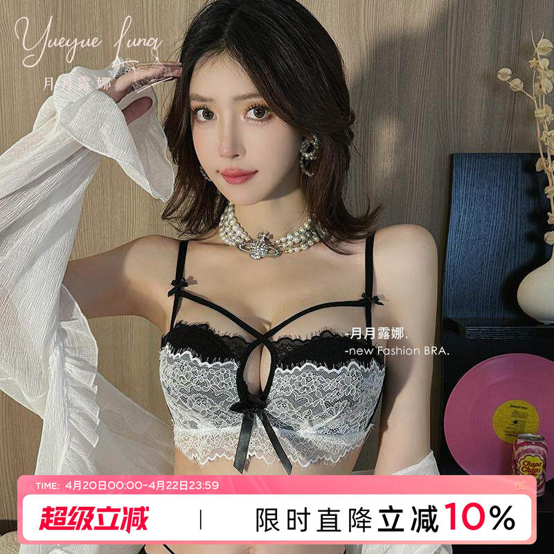 日系可爱绑带蕾丝内衣女无钢圈小胸聚拢上托性感纯欲萝莉风文胸罩