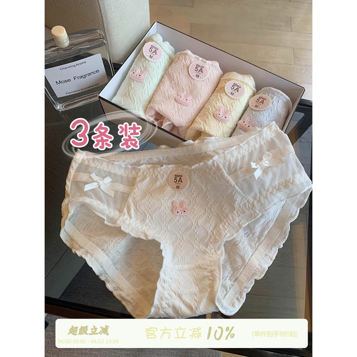 馨帮帮Bra 日系可爱兔舒适透气内裤女蕾丝拼接纯棉裆部中腰三角裤