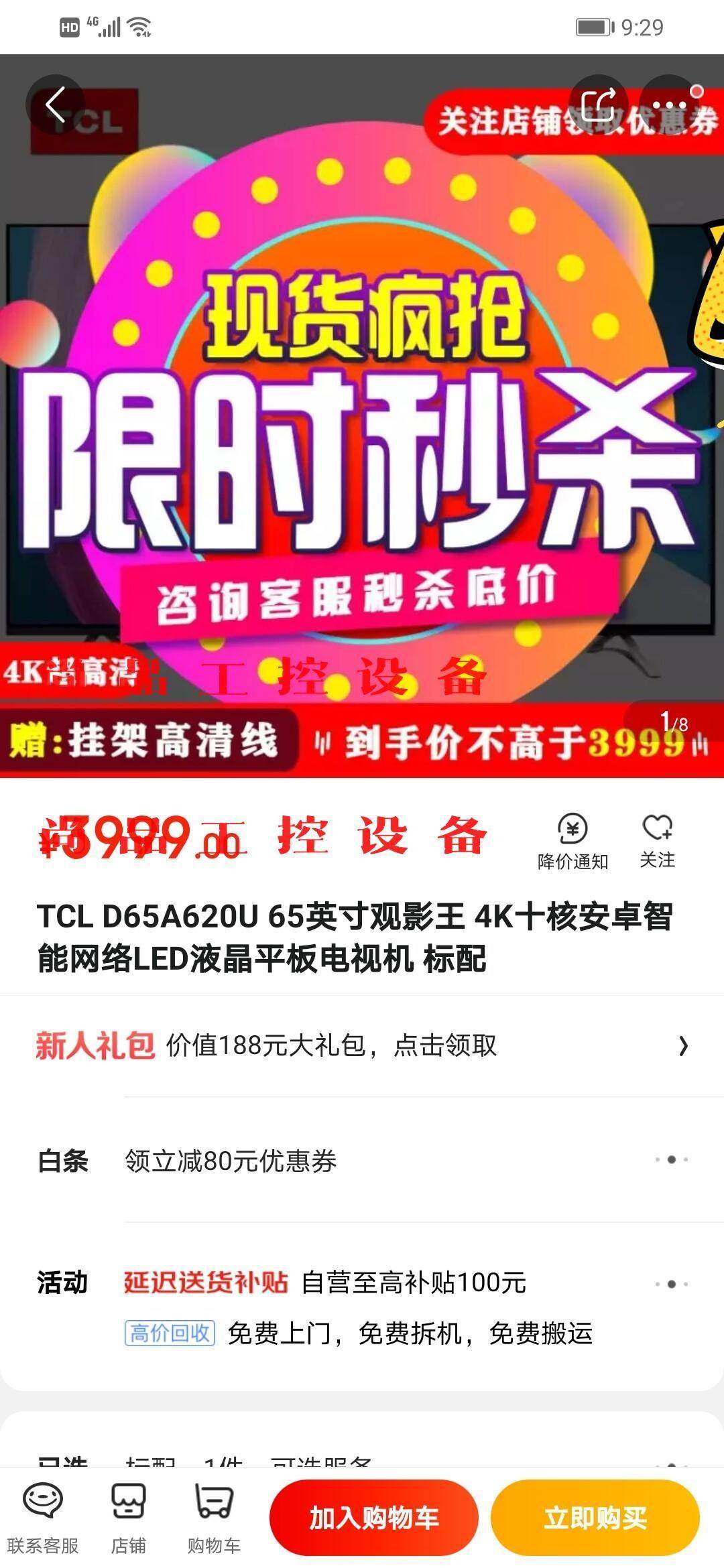 TCL,D65a620u4k智能液晶电视,样机亏本大甩卖,本询价