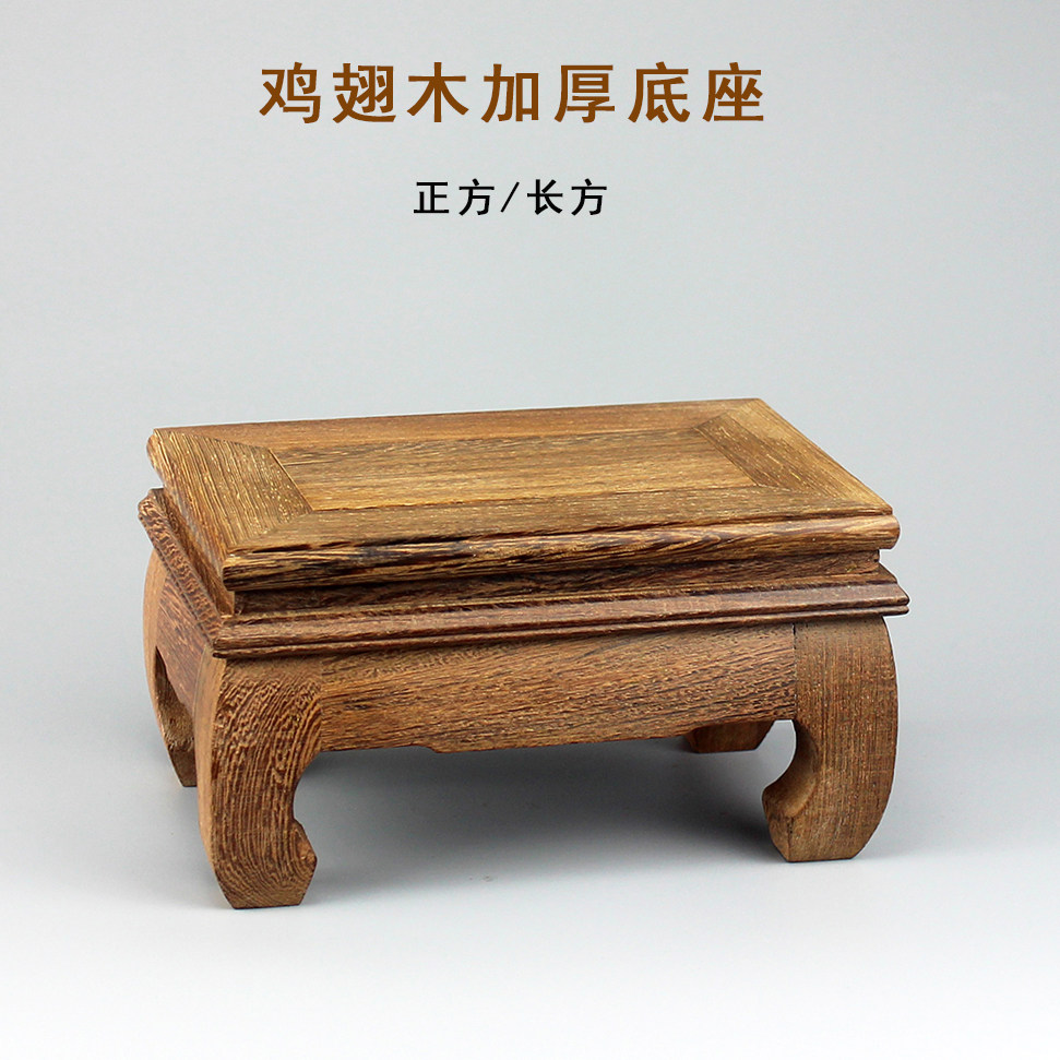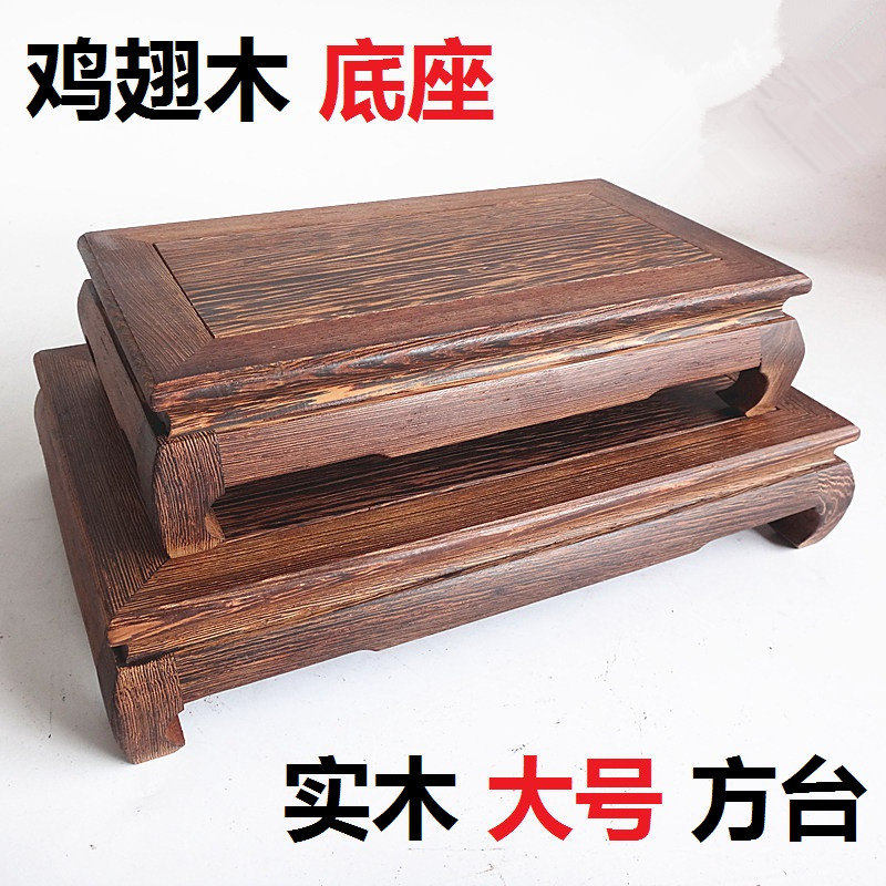 红木雕刻工艺品佛像茶壶摆件鸡翅木质长方形大号实木托奇石头底座