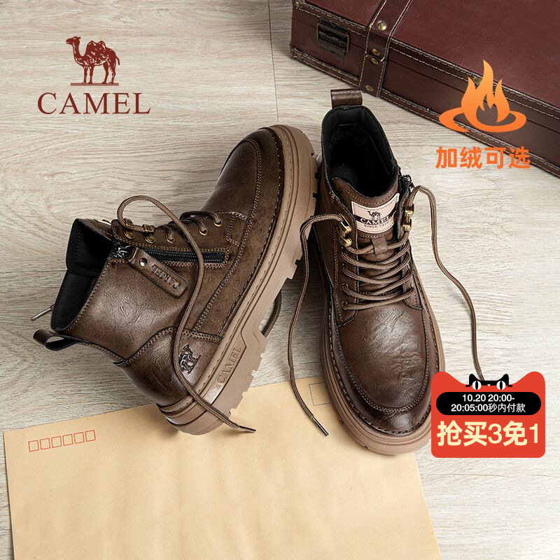 骆驼男鞋马丁靴2025秋季新款防滑时尚户外复古英伦厚底加绒工装靴