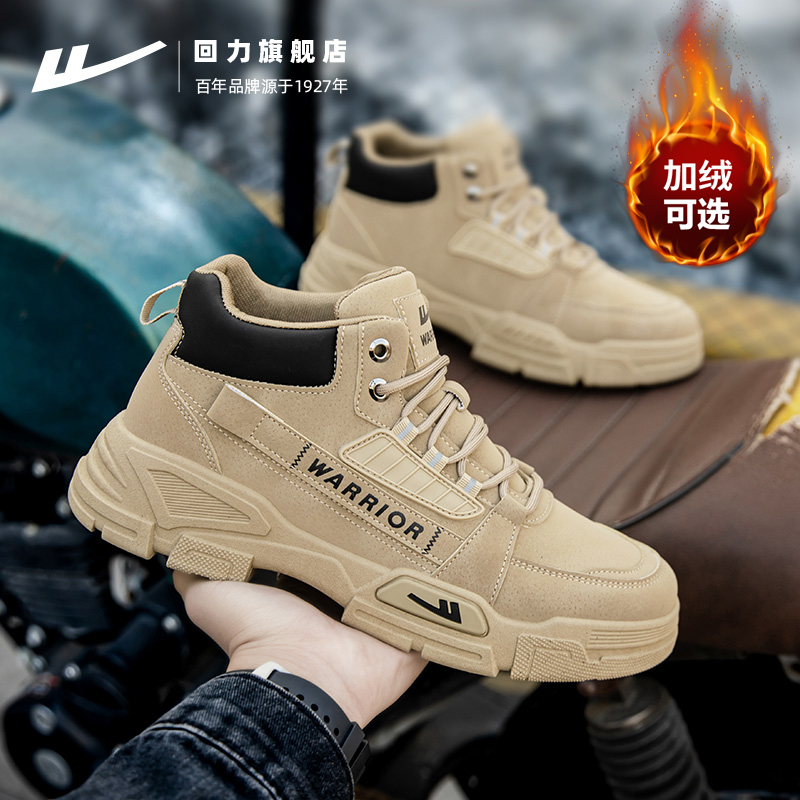 回力男鞋春秋马丁靴男士劳保爆款雪地棉靴高帮防滑潮流加绒工装靴