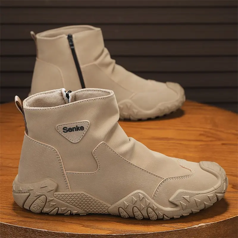 骆驼男鞋马丁靴男工装增高厚底中帮户外登山加绒加厚保暖男士秋冬