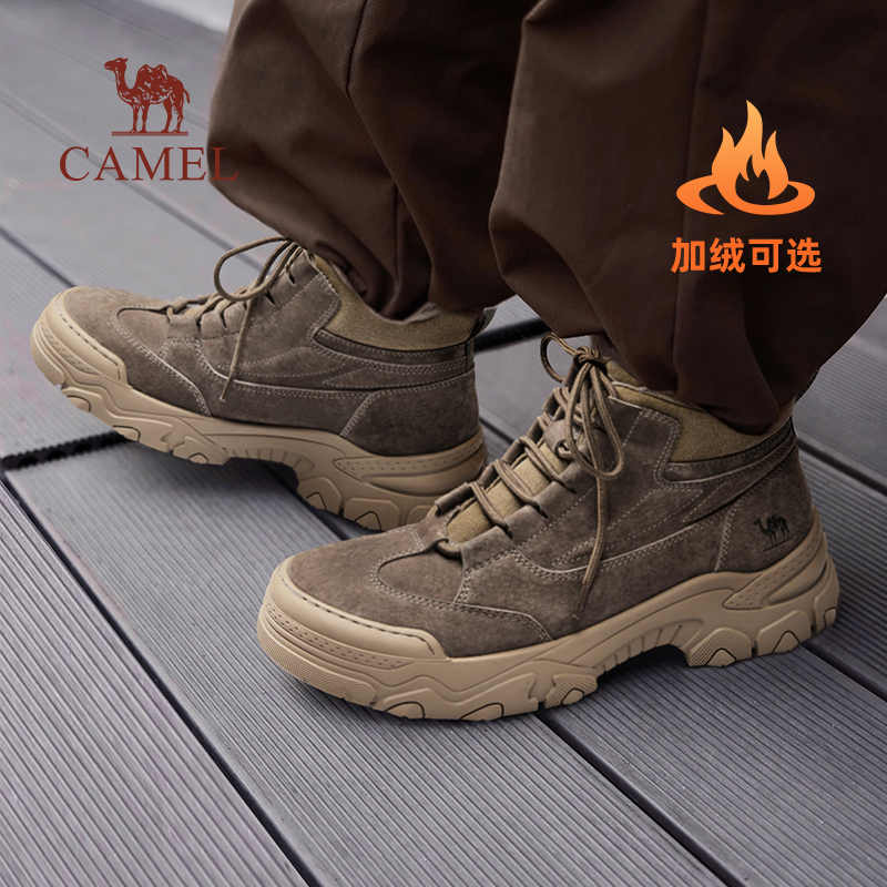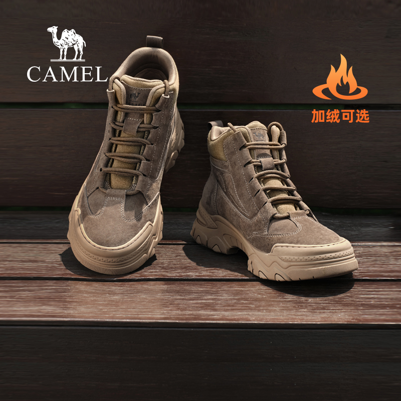 骆驼男鞋2025秋季新款马丁靴户外登山厚底加绒增高中高帮沙漠工装