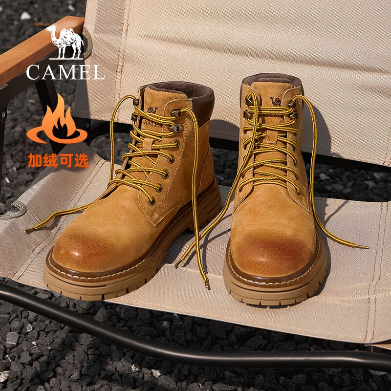 【双11预售】骆驼男鞋马丁靴秋季高帮休闲工装靴女复古户外大黄靴