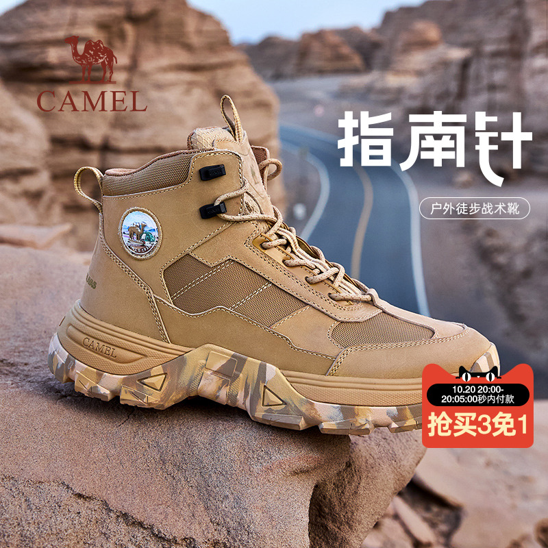 骆驼指南针男鞋2025秋季新款高帮马丁大黄靴登山战术作战伞兵靴