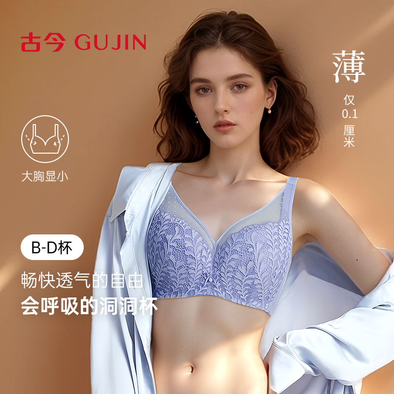 古今调整内衣女大胸显小3D软支撑全罩杯蕾丝软钢圈运动风舒适文胸