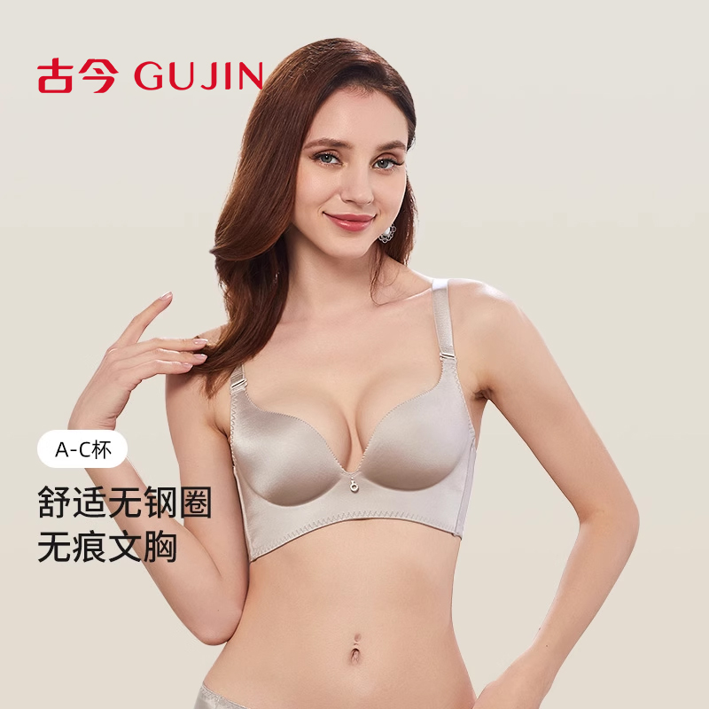 古今文胸小胸聚拢无钢圈上薄下厚款舒适透气高弹性光面无痕内衣女