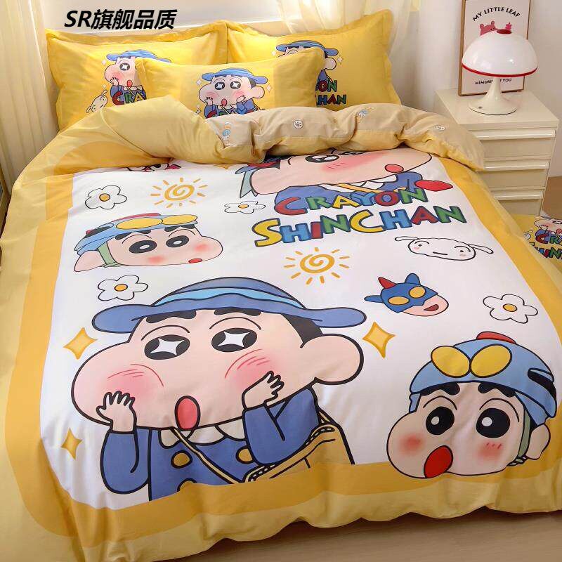 蜡笔小新儿童纯棉床上四件套卡通可爱100全棉床单被套学生三件套3