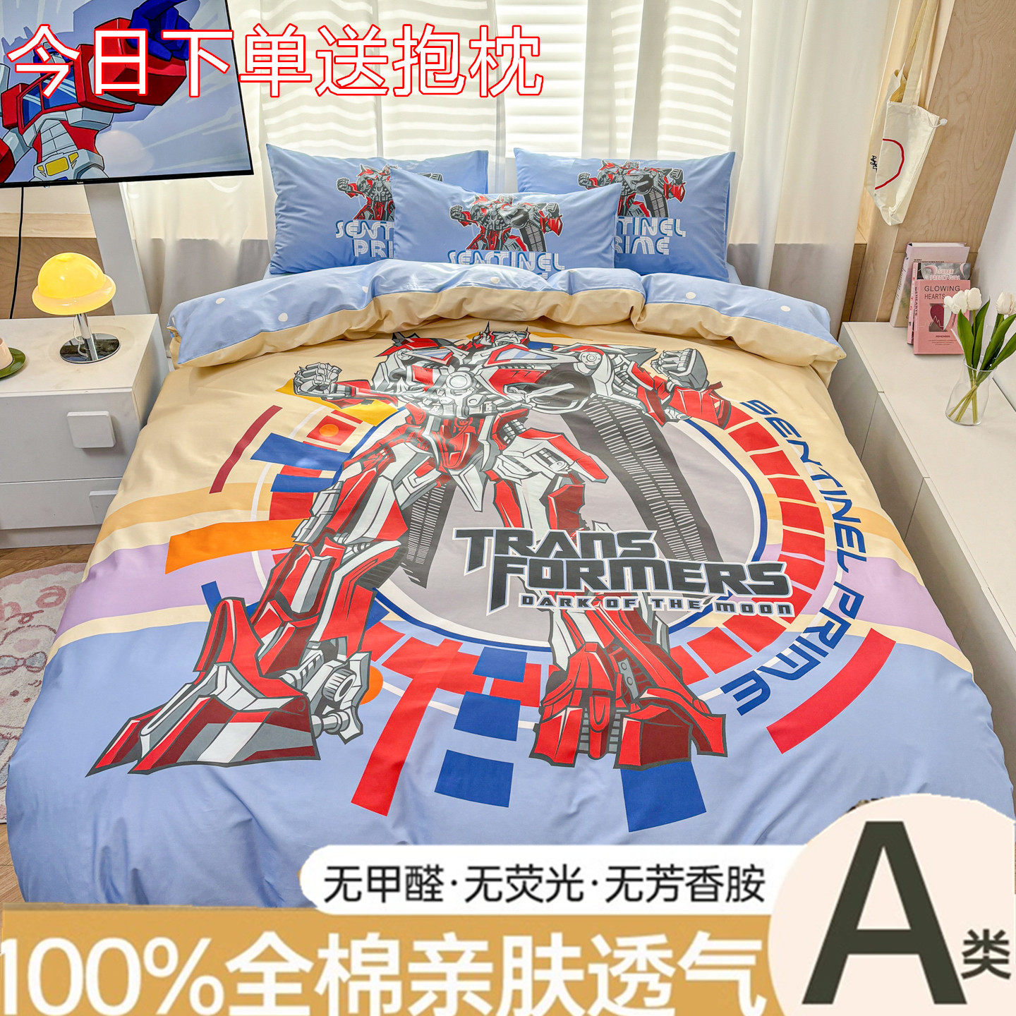 A类卡通变形金刚纯棉四件套全棉机器人男孩儿童宿舍被床单笠3件套