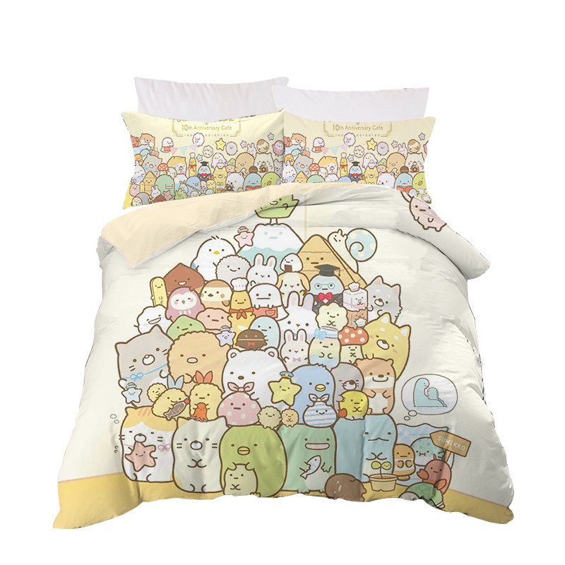 卡通儿童房角落生物全棉牀品3四件套女生纯棉牀单学生宿舍被套1.5
