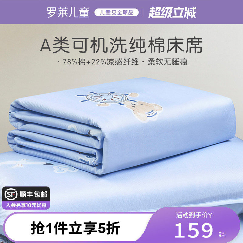 罗莱儿童A类可机洗纯棉幼儿园夏季凉感抗菌床单3件套学生凉席枕套