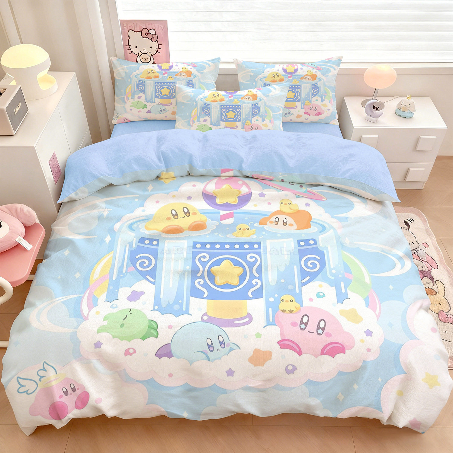 卡通星之卡比儿童三四件套床单床笠式可选柔软单人学生宿舍3件套