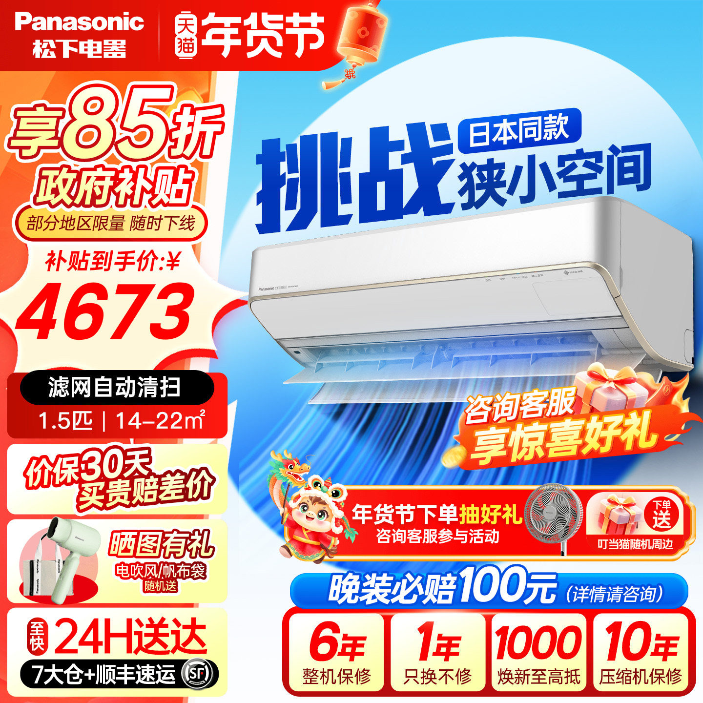Panasonic/松下 ZY35K230/ZY35K210变频冷暖壁挂式空调 1P/1.5P