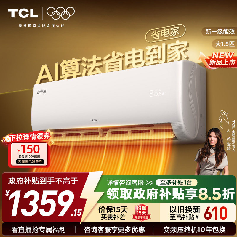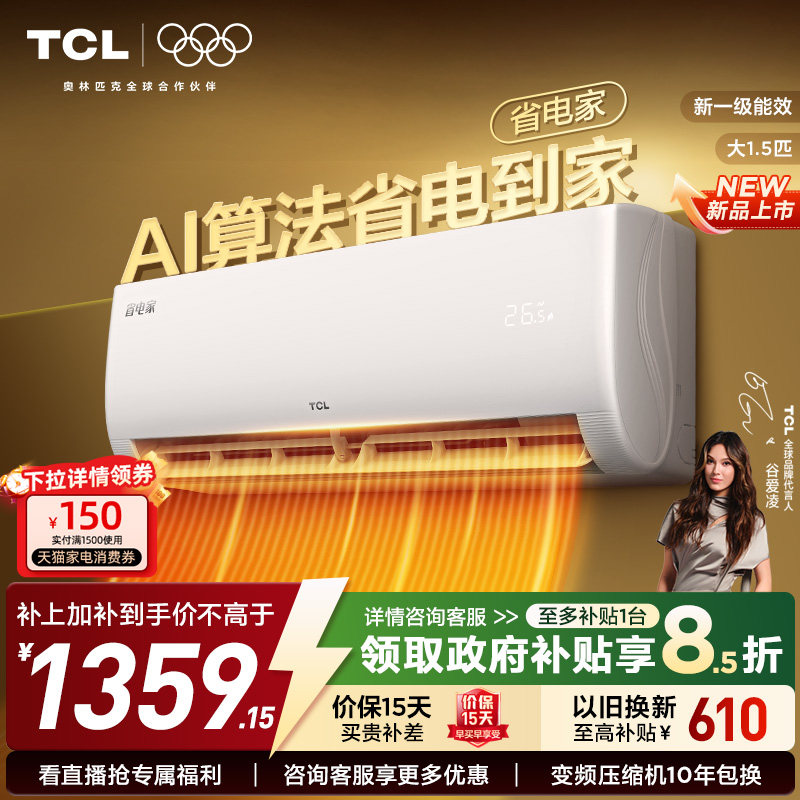 【新品】TCL空调省电家大1.5匹1匹挂机变频冷暖新一级壁挂式