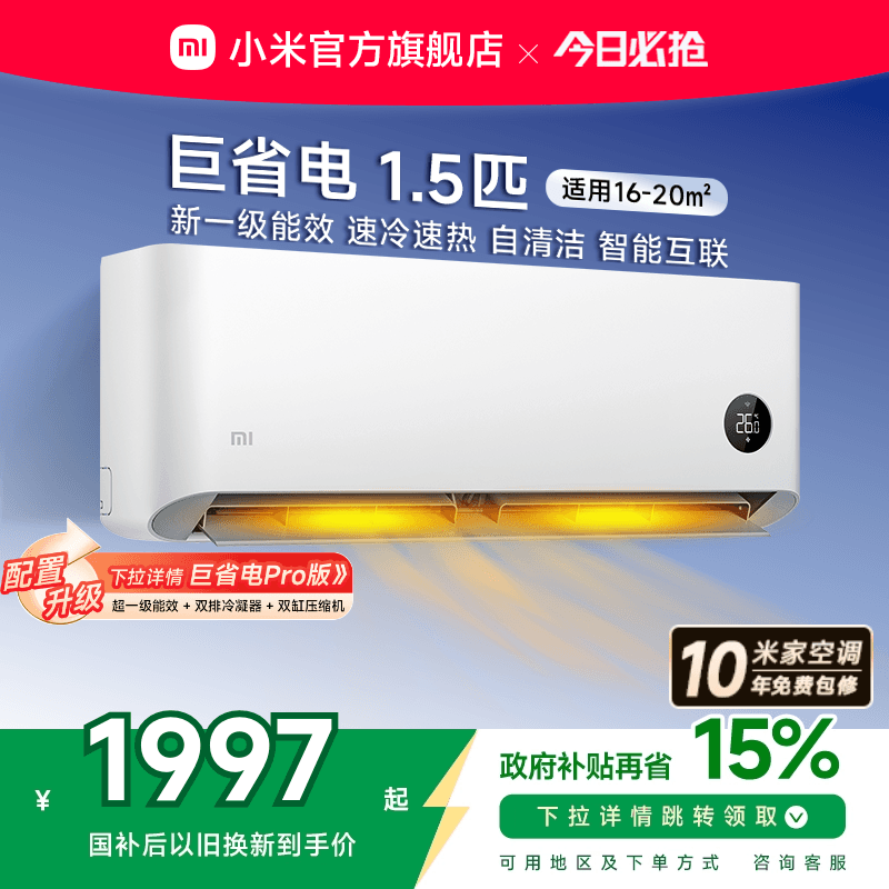 小米巨省电空调挂机冷暖两用1.5匹1匹一级能效变频家用智能壁挂式