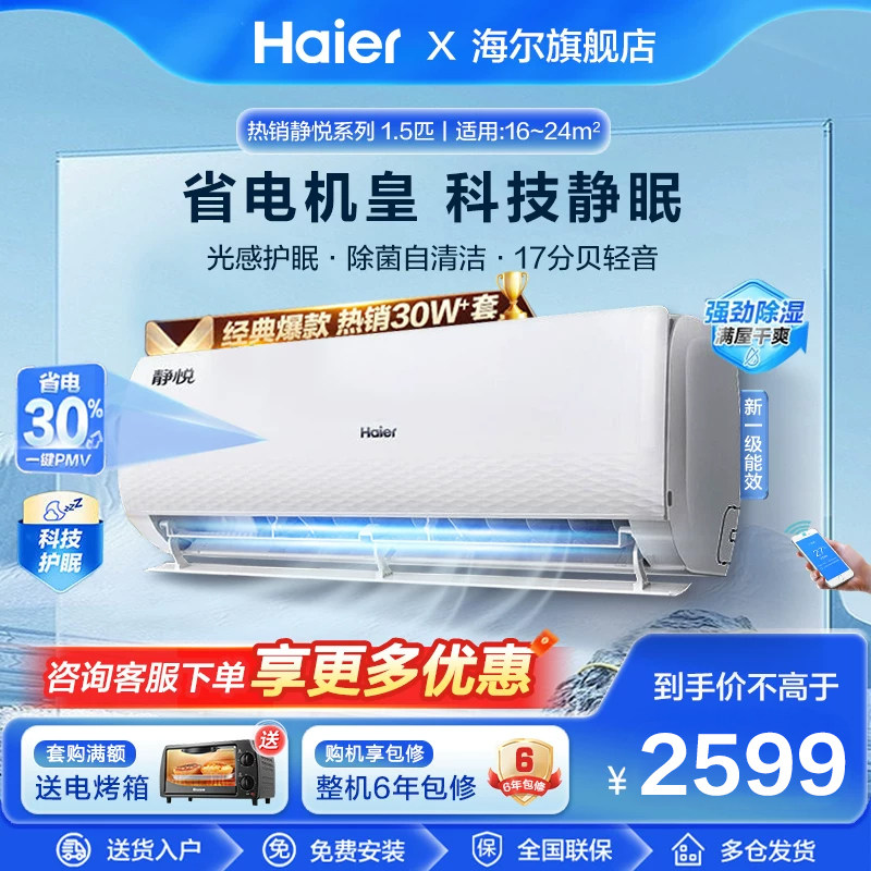 海尔空调1.5匹P一级能效家用变频壁挂式出租屋用卧室冷暖挂机节能