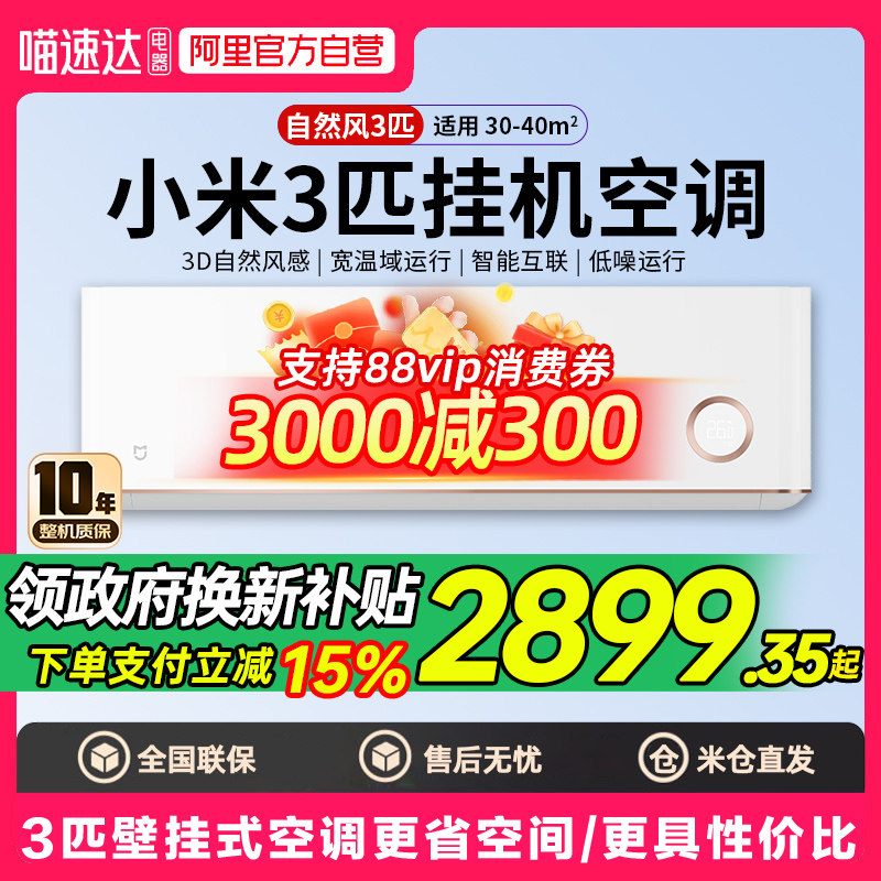 【补贴15%】小米空调3匹冷暖家用变频新能效壁挂式自然风鎏金版80