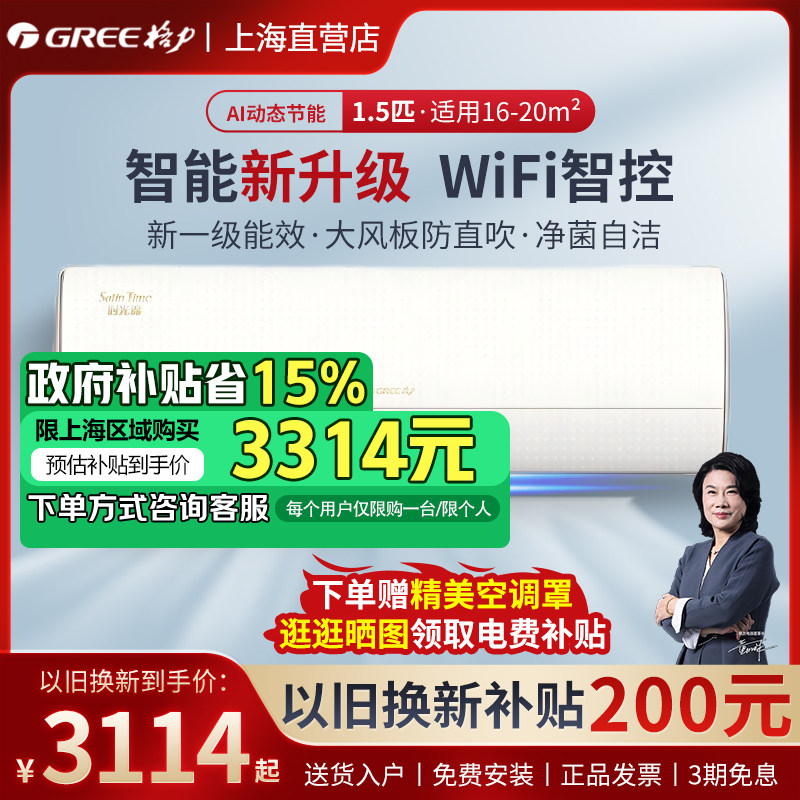Gree/格力 1.5匹时光锦WIFI智控智能变频壁挂式空调一级能效卧室