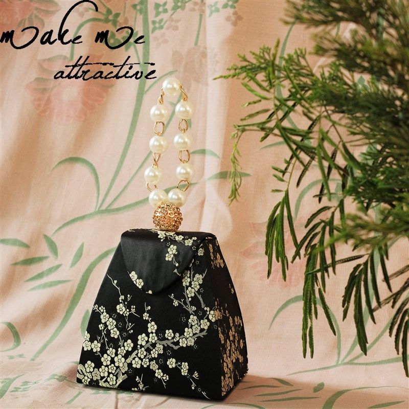 复古风汉服小包民国文艺珍珠手提包新中式国风斜挎包旗袍刺绣女包