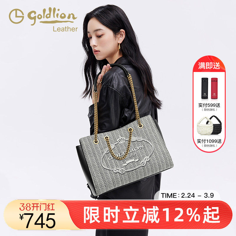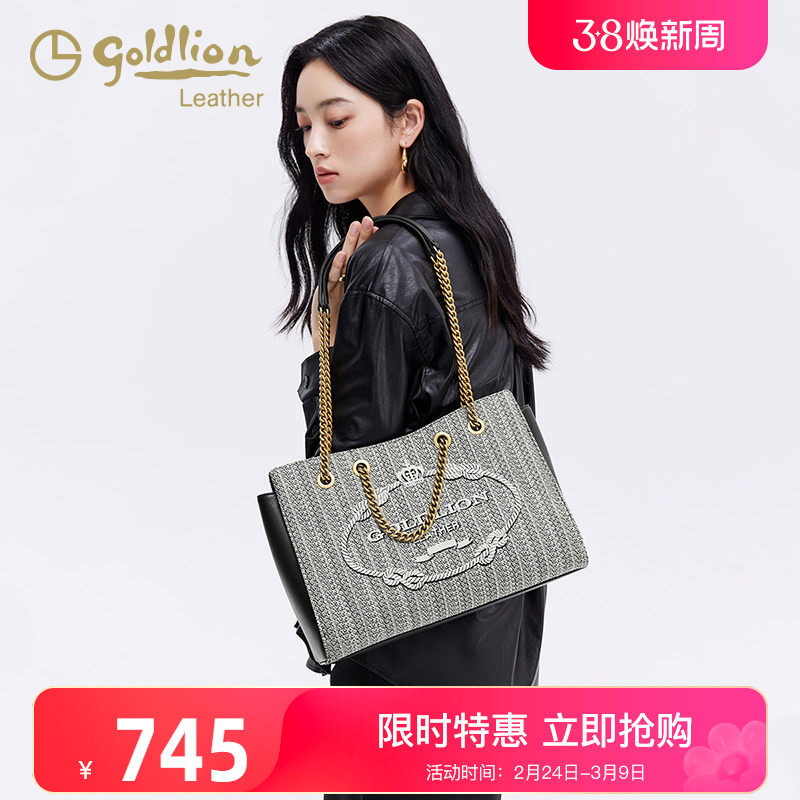 金利来高级轻奢刺绣女包托特包2026新款百搭链条单肩手提包大容量
