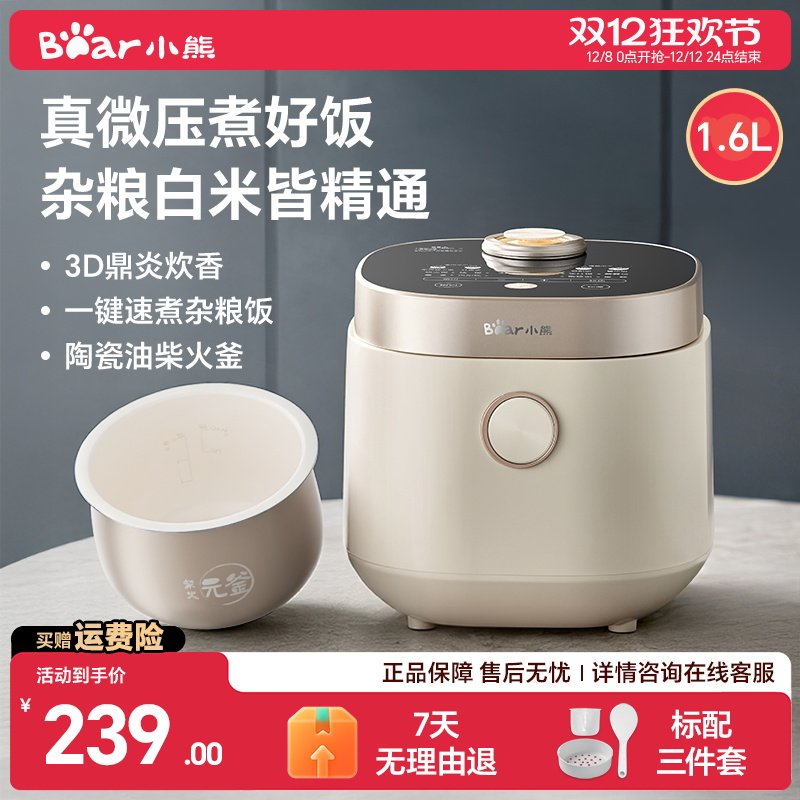 小熊小型电饭煲1到2人陶瓷油内胆微压迷你电饭锅杂粮饭煮饭锅正品