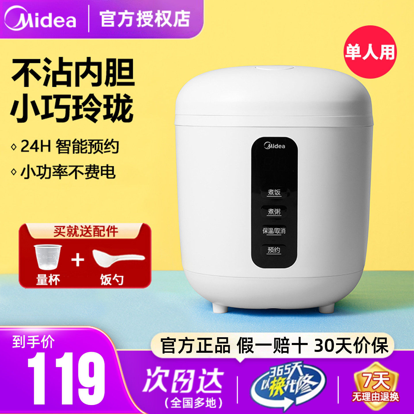 美的电饭煲1.2升家用小型智能一人食宿舍迷你电饭锅1到2人正品