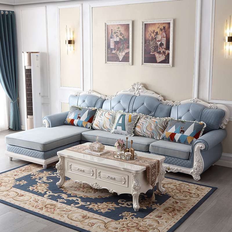 欧式布艺沙发转角L型组合实木雕花小户型别墅客厅复古家具可拆洗