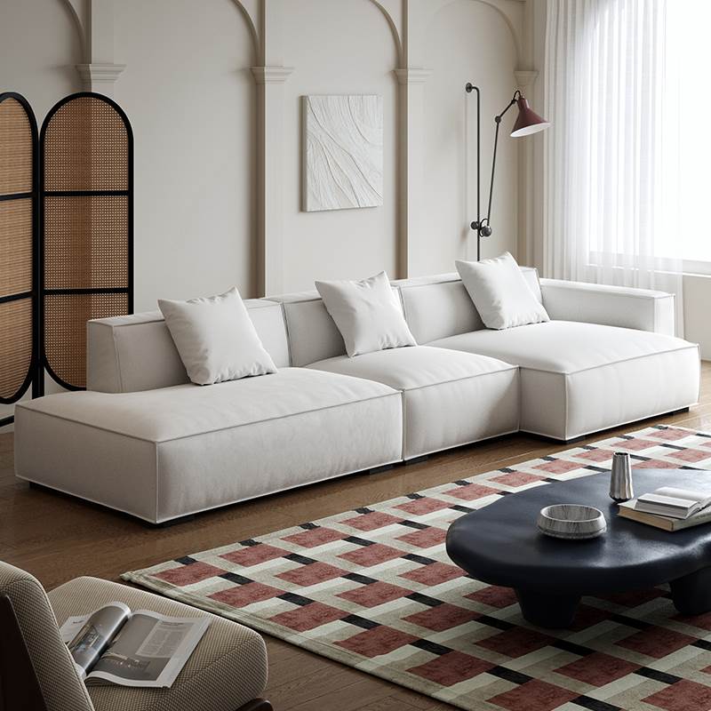 意式极简棉麻布艺沙发现代可拆洗家用大小户型直排豆腐块转角沙发