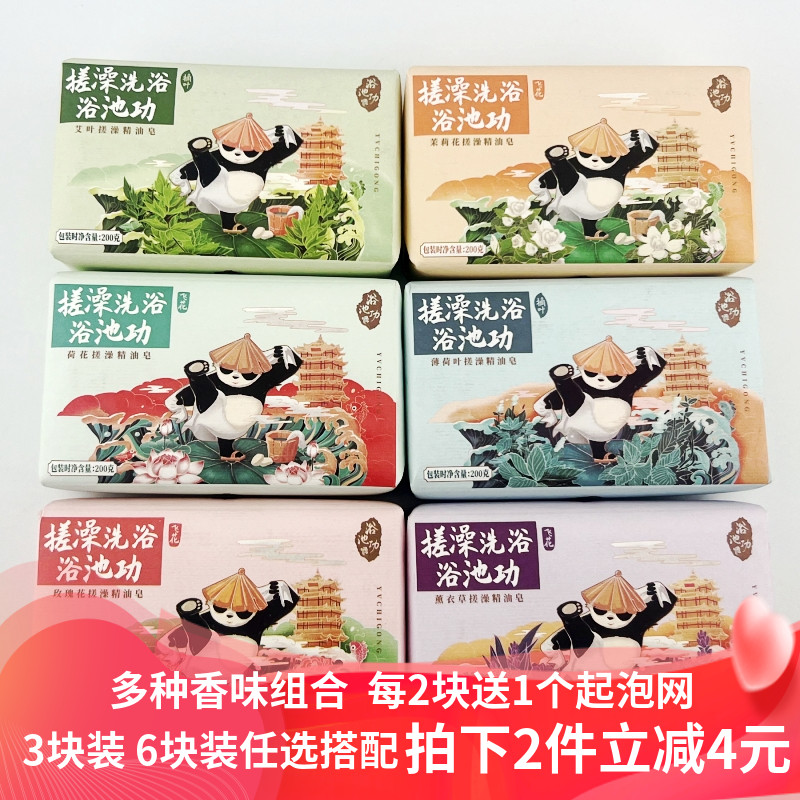 浴池功搓澡洗浴香皂200g玫瑰花薰衣草茉莉沐浴皂艾叶洗澡精油肥皂
