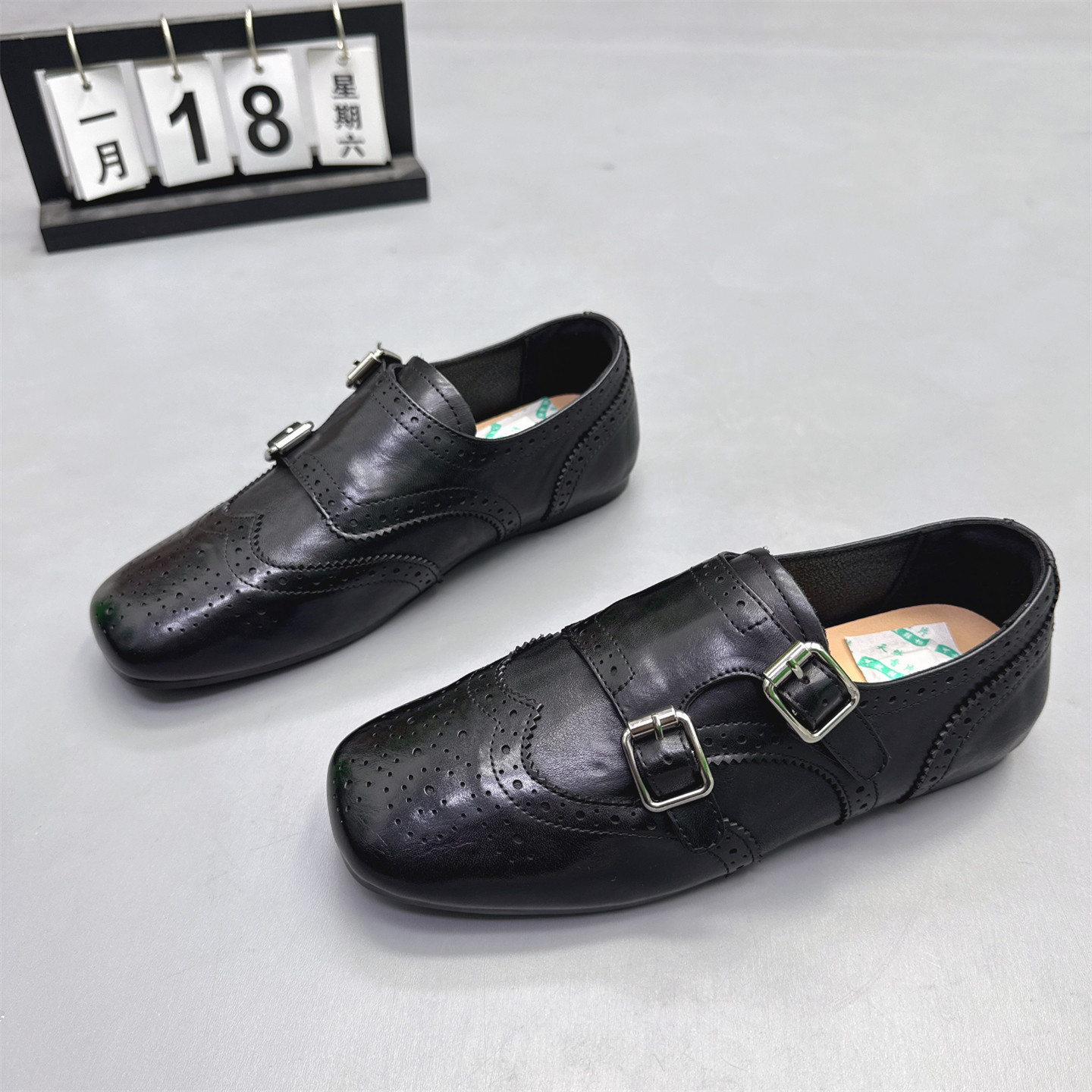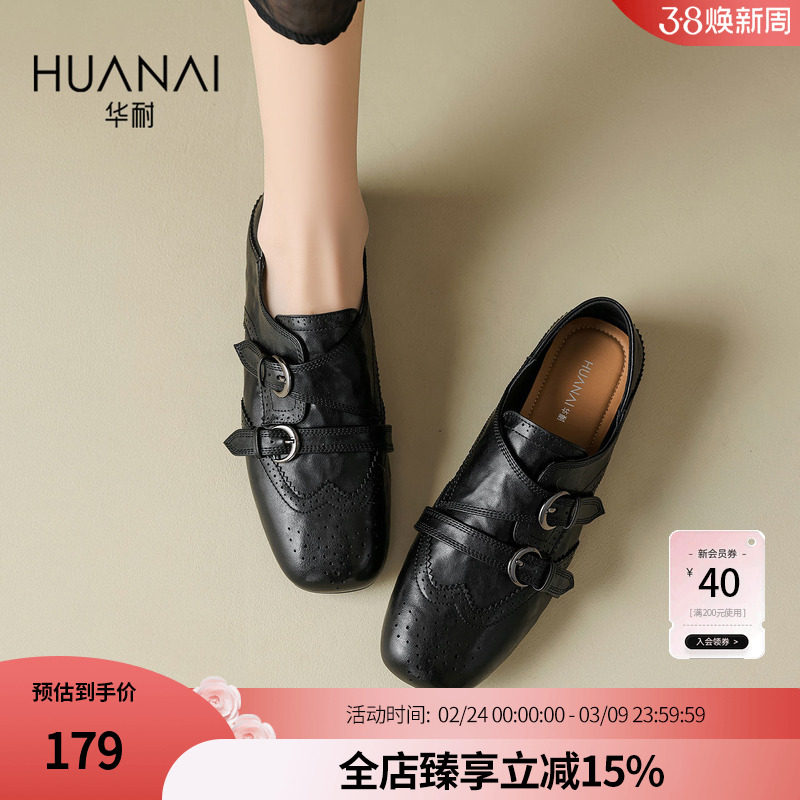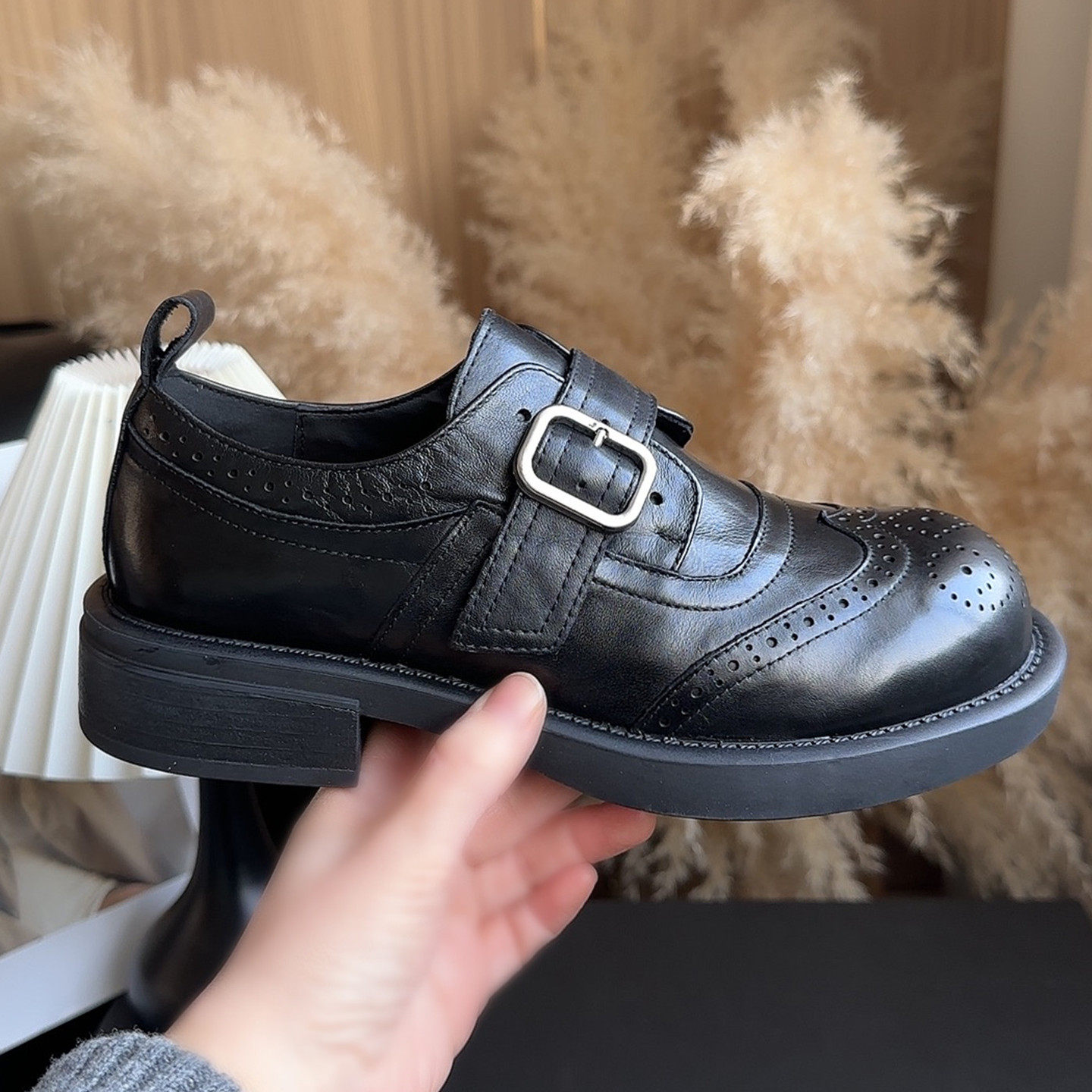 头层牛皮软底英伦小皮鞋女单鞋2026春新款复古皮带扣雕花布洛克鞋