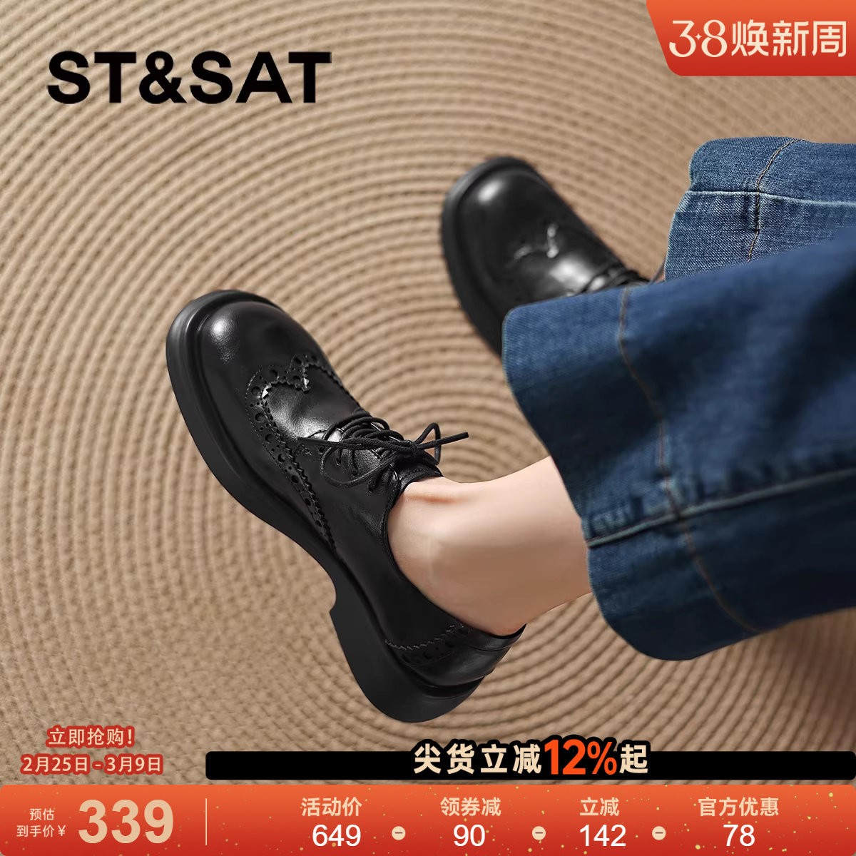 SGIRL TWTW2026新款英伦风小皮鞋复古圆头布洛克女鞋厚底玛丽珍鞋