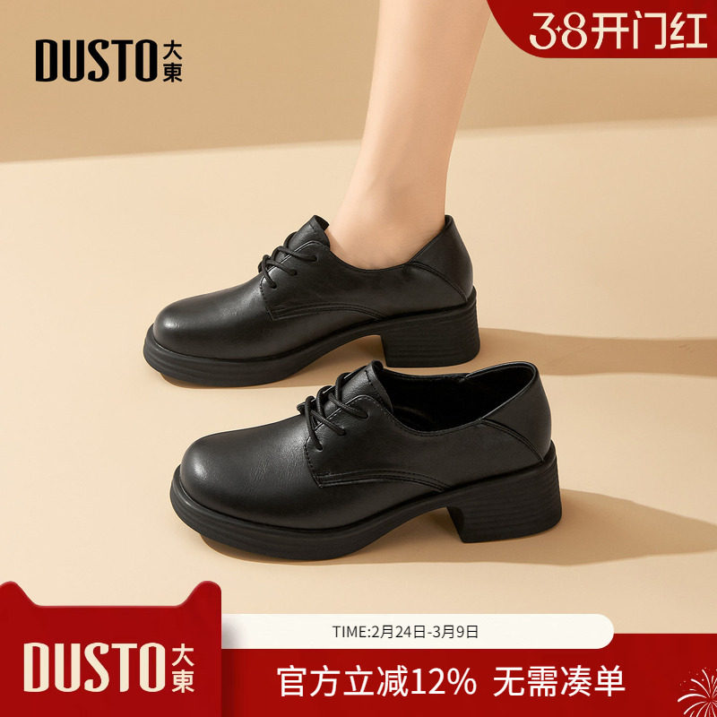 大东dd小皮鞋系带布洛克女鞋2026新款春季通勤百搭乐福深口单鞋女