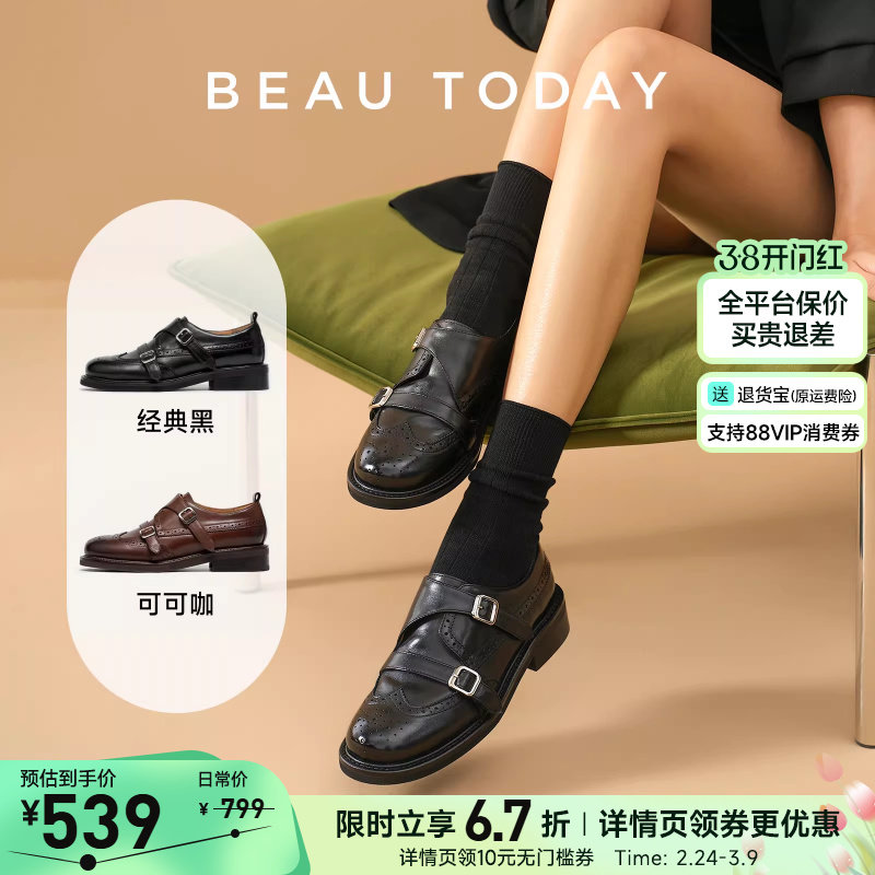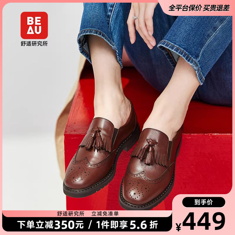 BeauToday乐福鞋女2026新款春英伦风小皮鞋孟克鞋布洛克雕花女鞋
