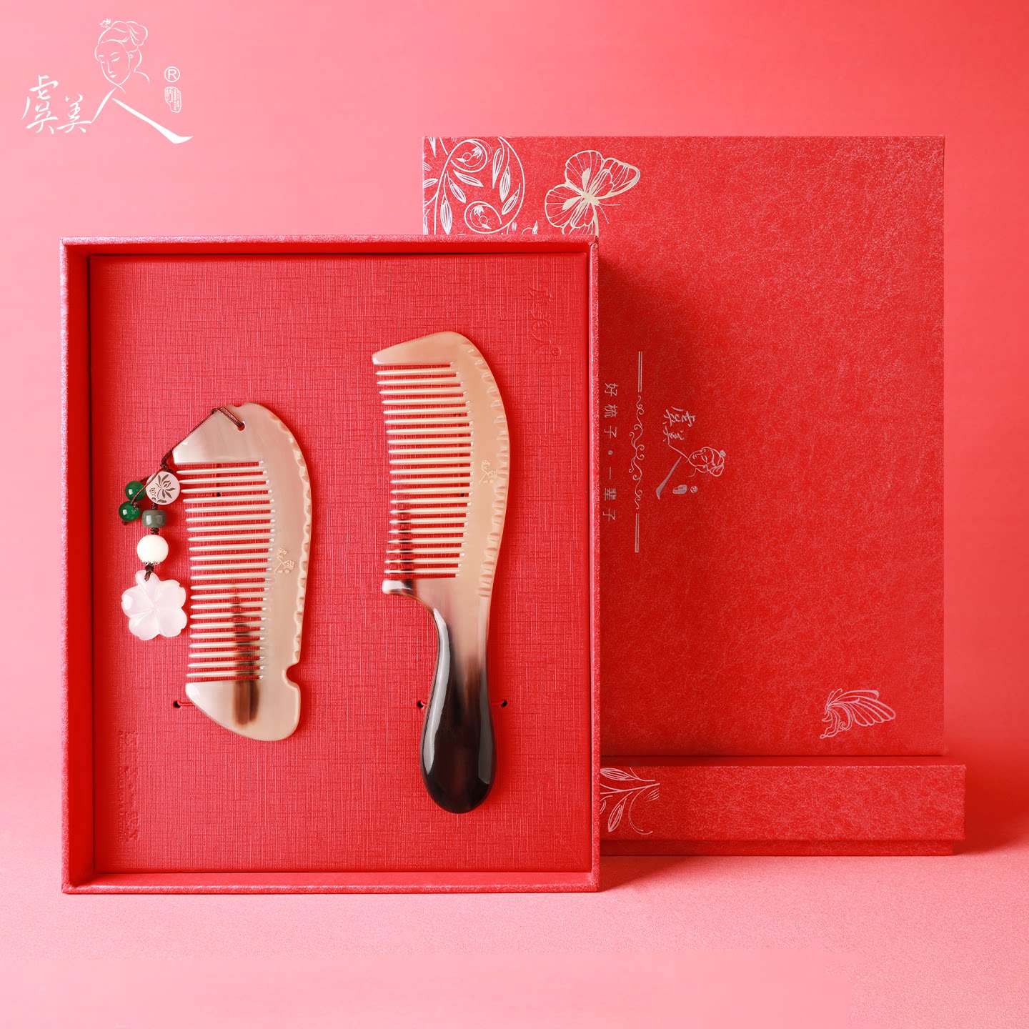 紫檀木雕花梳子礼盒装情人节新婚礼物送女友妈妈生日礼物女士专用