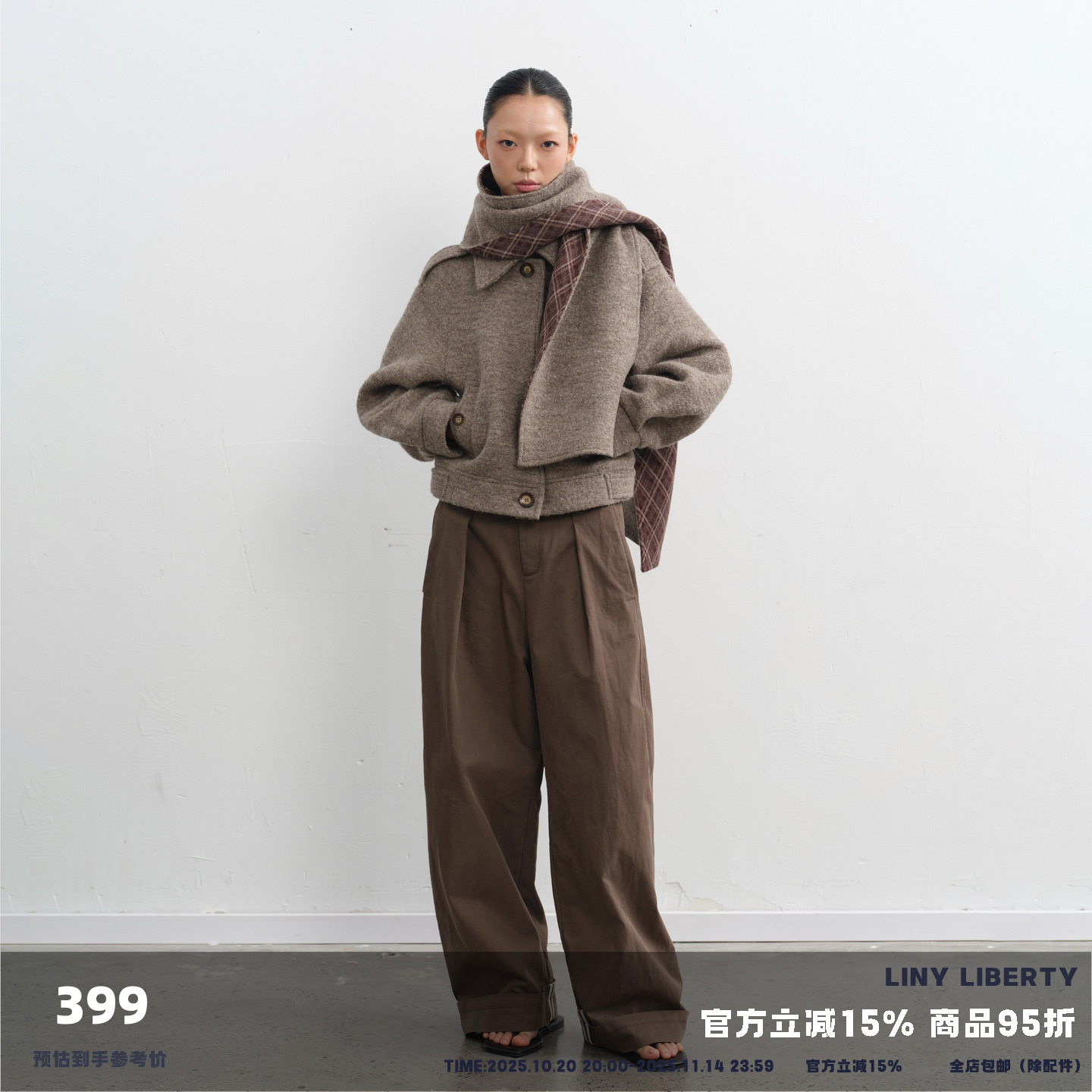LINY LIBERTY 25AW 70羊毛复古英伦风短款毛呢外套女直筒宽松外套