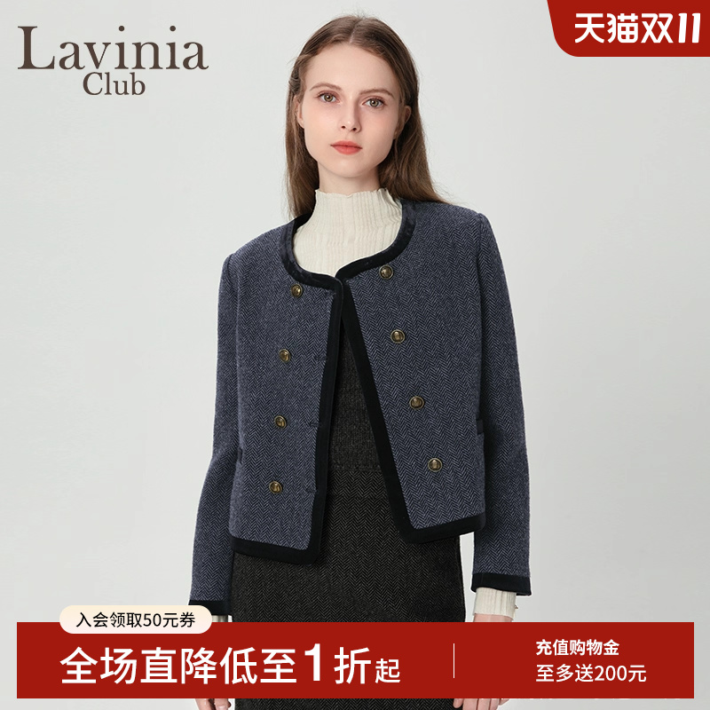 Lavinia通勤气质黑灰色高级感绵羊毛短款毛呢外套女秋冬R47W51P