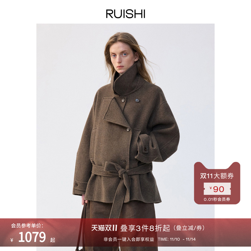 RUISHI芮时 “冬日来信”100美利奴羊毛大衣廓形短款毛呢外套女冬