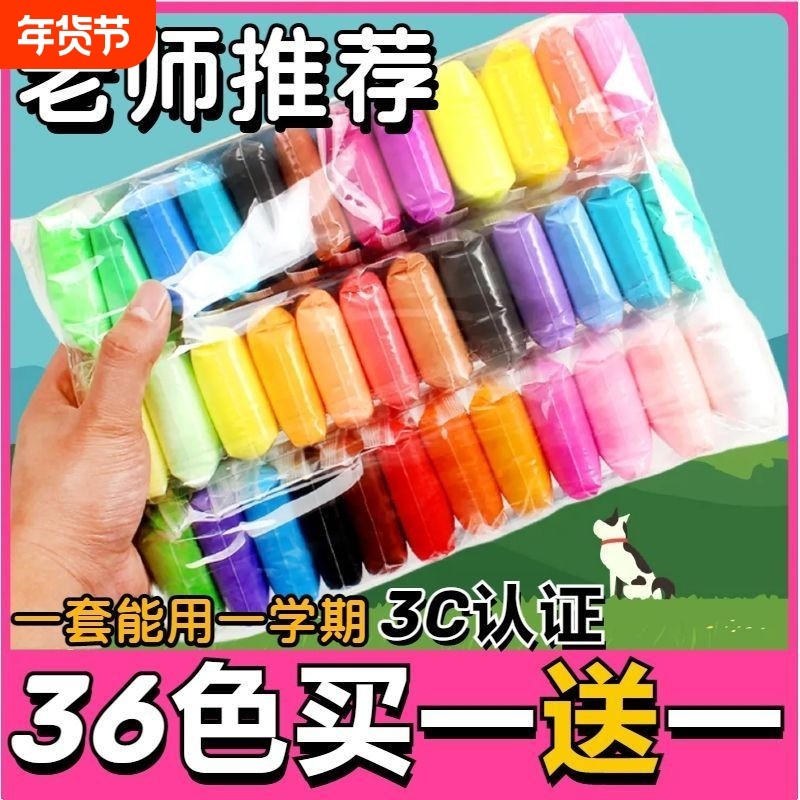 超轻粘土橡皮泥幼儿园专用无毒黏土36色手工diy小学生全套彩色泥儿童益智玩具套装太空泥24色安全无味泡泡泥
