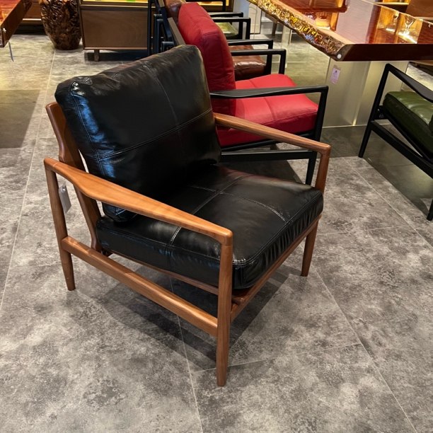单人沙发椅汉克椅北欧侘寂风实木书房复古美式皮艺设计师真皮沙发