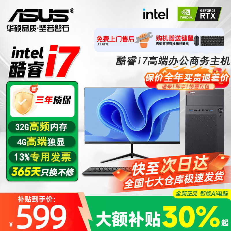 【华硕(ASUS)联名办公】2026电脑主机商用办公专用酷睿i5/i7专用高端电竞台式机全套台式一体国补电脑