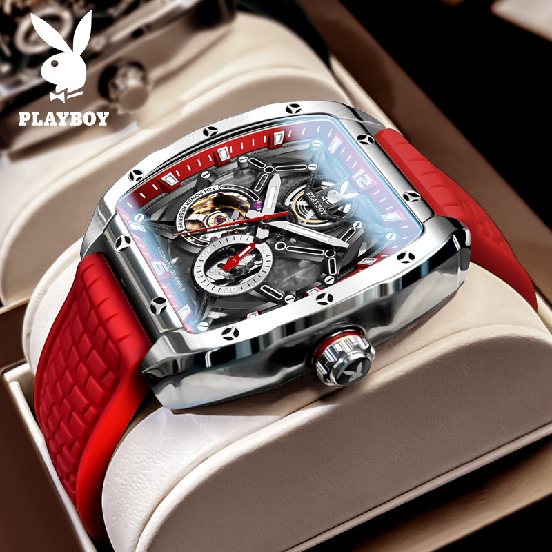 正品花花公子全自动机械表男士潮流手表男款品牌镂空运动防水男表