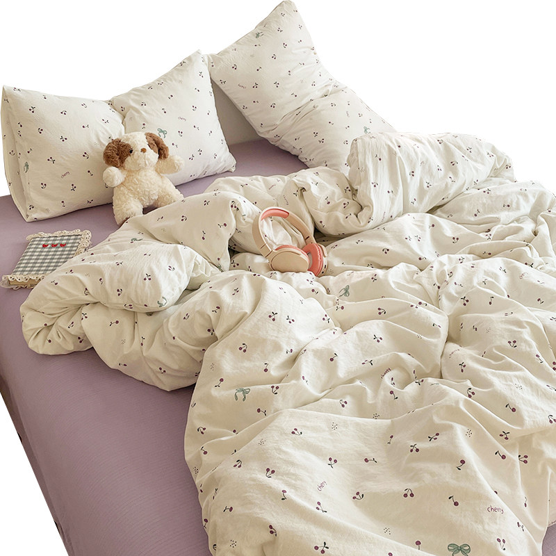无印良品纯棉四件套全棉床上用品清新碎花被套床单宿舍三件套床笠