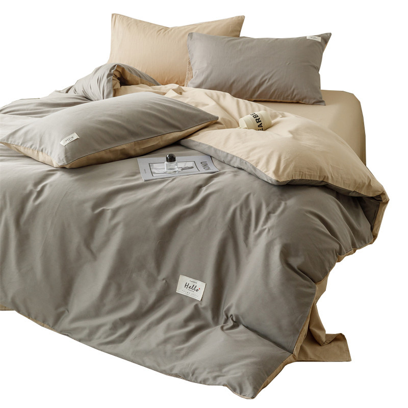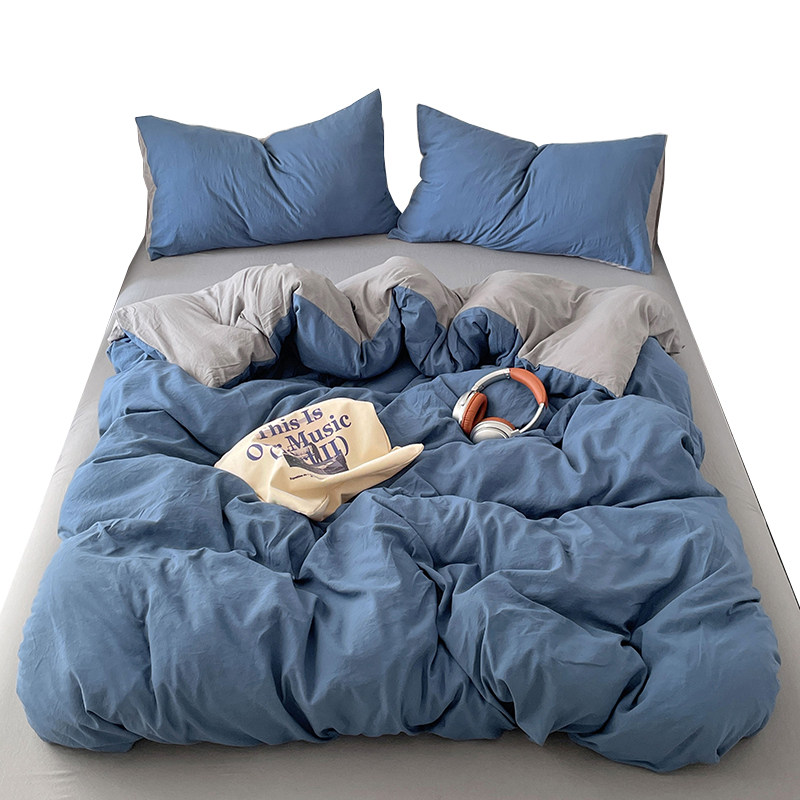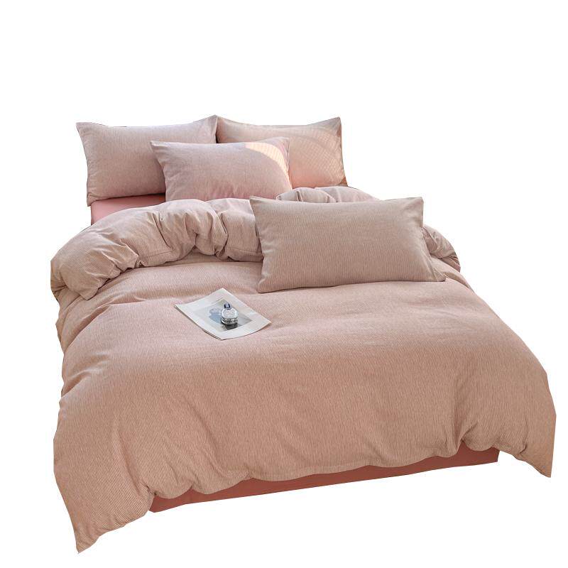 无印良品四件套全棉水洗棉纯色简约纯棉可裸睡床单被套枕套三件套