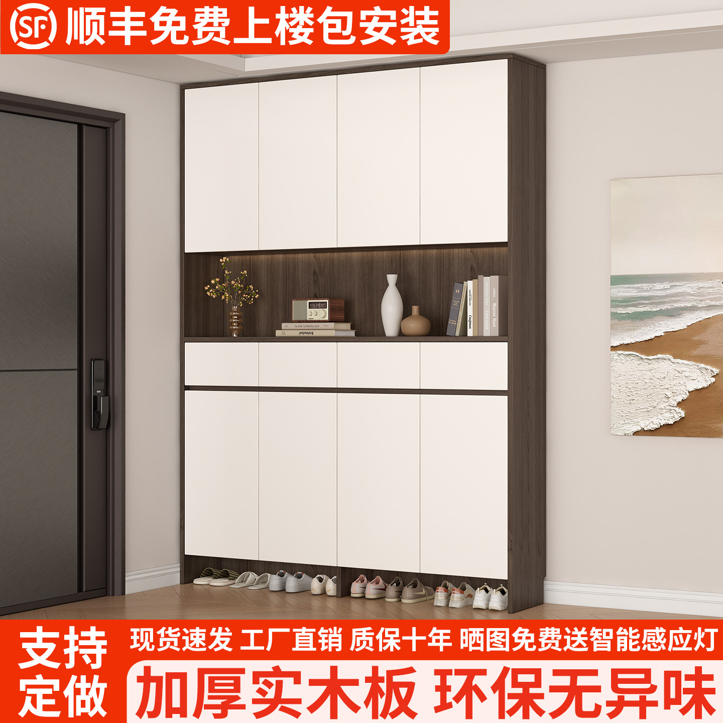 全实木鞋柜家用门口一体靠墙入户玄关柜现代简约客厅定制储物柜子