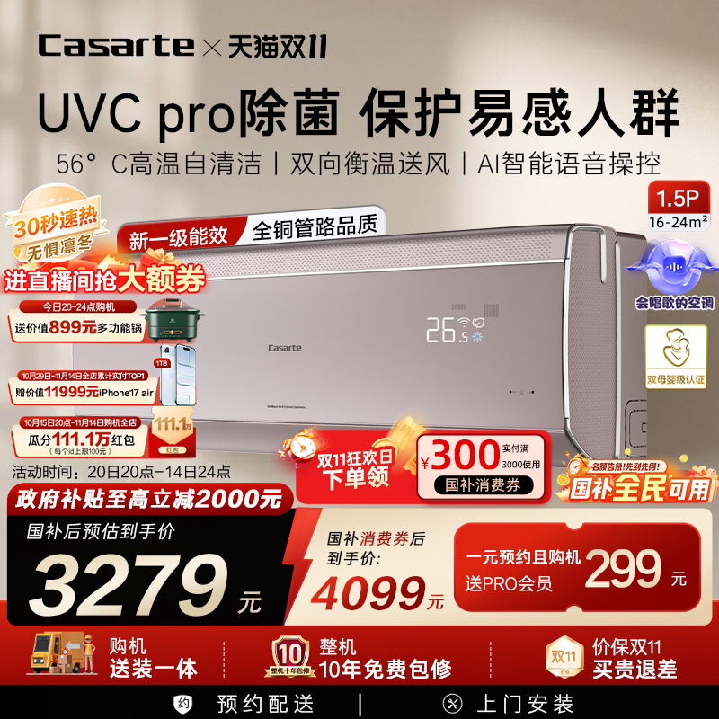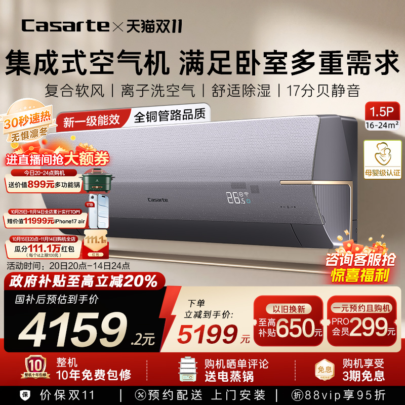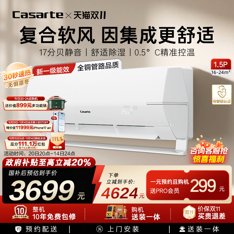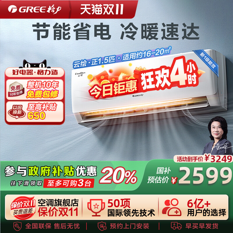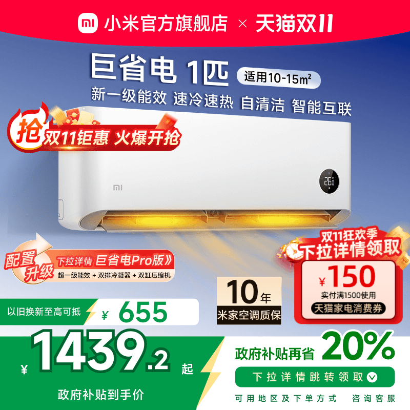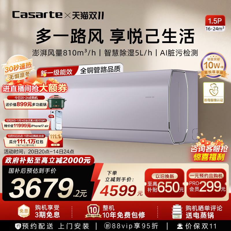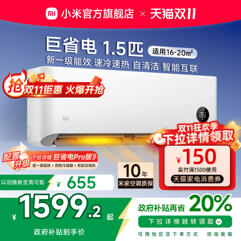【格力官方】新一级能效大1匹正1.5匹家用变频冷暖空调挂机云欢 价格:¥4299售出:10000件   【格力官方】一级能效大1匹正1.5匹变频冷暖卧室空调挂机云锦III 价格:¥4248售出:10000件   【Gree/格力官方】新一级能效大1匹正1.5匹变频冷暖空调挂机云佳 价格:¥4299售出:10000件   飞利浦空调大1.5匹超一级能效挂机式以旧换新补贴变频冷暖家用se 价格:¥3173.5售出:2件   华凌空调大1.5匹35HA1Ⅲ-P超省电Pro一级家用挂机变频wifi智控 价格:¥1599售出:100000件   政府补贴卡萨帝揽光星悦空调挂机变频家用卧室冷暖除菌新1级1.5匹 价格:¥4399售出:600件   政府补贴卡萨帝揽光星悦空调挂机变频家用卧室冷暖除菌新1级1.5匹 价格:¥4499售出:2000件   政府补贴卡萨帝空调挂机变频家用卧室除湿冷暖省空间风量新1级2匹 价格:¥6099售出:500件   政府补贴卡萨帝空调挂机变频家用卧室除湿冷暖复合软风新1级1.5匹 价格:¥4999售出:77件   政府补贴卡萨帝空调挂机变频家用卧室除湿冷暖复合软风新1级1.5匹 价格:¥4924售出:200件   政府补贴卡萨帝空调挂机变频家用卧室除湿冷暖复合软风新1级1.5匹 价格:¥4824售出:37件   政府补贴卡萨帝空调挂机变频家用卧室除湿冷暖省空间风量新1级2匹 价格:¥5599售出:100件   一级能效东宝空调挂机变频冷暖大1.5匹2P3P家用单冷1P壁挂式卧室 价格:¥798.75售出:100件   【Gree/格力官方】新一级冷暖两用空调挂机变频正1.5匹变频云绘 价格:¥3249售出:300件   科龙静省电大1.5p空调挂机变频1p2p3p新一级能效变频冷暖家用挂式 价格:¥1019售出:9件   以旧换新卡萨帝空调挂机变频家用卧室除湿冷暖洗空气新一级1.5匹 价格:¥5899售出:200件   【热卖】日立1.5匹原装压缩机新一级日立空调挂机变频冷暖白熊君 价格:¥4937售出:43件   政府补贴卡萨帝空调挂机变频家用卧室除湿冷暖复合软风新1级1.5匹 价格:¥5074售出:12件   以旧换新卡萨帝空调挂机变频家用卧室除湿冷暖双路送风新1级1.5匹 价格:¥4799售出:76件   海信璀璨空调1.5匹一级能效省电新风空调挂机变频卧室家用35C320 价格:¥3599售出:1件   新品卡萨帝致境空调挂机变频家用卧室冷暖可变软风新一级1.5匹WKA 价格:¥5599售出:1件   以旧换新卡萨帝空调挂机变频家用卧室除湿冷暖洗空气新一级1.5匹 价格:¥5399售出:43件   以旧换新卡萨帝空调挂机变频家用卧室除湿冷暖双路送风新1级1.5匹 价格:¥4799售出:23件   以旧换新卡萨帝空调挂机变频家用卧室除湿冷暖双路送风1级1.5匹 价格:¥5599售出:67件   以旧换新卡萨帝空调挂机变频家用卧室除湿冷暖可变软风新1级1.5匹 价格:¥5799售出:100件   以旧换新卡萨帝空调挂机变频家用卧室除湿冷暖双路进送风1级1.5匹 价格:¥5599售出:19件   【政府补贴】TCL大1匹新一级小蓝翼真省电空调挂机变频家用冷暖 价格:¥1874售出:29件   松下官方1.5匹家用空调挂机变频冷热两用新1级能效自清洁H13KQ10N 价格:¥9428售出:1件   海尔1匹空调挂机变频一级能效壁挂式冷暖两用家用26KMC81静悦 价格:¥1899售出:0件   以旧换新卡萨帝空调挂机变频家用卧室除湿冷暖可变软风新1级1.5匹 价格:¥5799售出:37件   大金衡境FTXE135ZC-W1大1.5匹p空调挂机变频一级能效2.5排铜管 价格:¥5800售出:1件   小米巨省电空调挂机冷暖两用1.5匹1匹一级能效变频家用智能壁挂式 价格:¥1949售出:200000件   美的空调新一级能效家用大1.5匹2匹变频冷暖挂机官方正品酷省电 价格:¥2649售出:200000件   华凌空调双排神机二代HE家用挂机变频冷暖新一级大1.5匹2匹壁挂式 价格:¥2099售出:60000件   Gree/格力新一级能效大1匹正1.5匹变频冷暖卧室空调云佳pro挂机 价格:¥3204售出:100000件   小米空调1.5匹新一级省电冷暖挂机静音变频家用睡眠版智能壁挂式 价格:¥1499售出:10000件   海尔小红花空调净省电官方新一级能效家用1.5匹变频冷暖挂机35E1 价格:¥2379售出:80000件   美的酷省电Pro空调家用一级卧室1.5匹2匹官方变频冷暖正品大挂机 价格:¥2699售出:90000件   价格:¥1349售出:10000件   价格:¥1949售出:80000件   奥克斯空调1.5匹一级能效变频冷暖空调挂机官方旗舰正品省电侠 价格:¥1799售出:80000件   格力空调官方1.5匹天仪新一级能效变频冷暖卧室省电家用挂机正品 价格:¥1999售出:5000件   华凌空调2匹挂机50HL1一级变频冷暖卧室小客厅百亿补贴官方 价格:¥2078售出:1000件   【Gree/格力官方】新一级能效变频1.5匹挂机3匹柜机空调云佳Pro 价格:¥3659售出:10000件   海尔空调1.5匹P一级能效家用变频壁挂式出租屋用卧室冷暖挂机节能 价格:¥2086售出:6000件   华凌空调大1.5匹35HA1Ⅲ-P超省电Pro一级家用挂机变频wifi智控 价格:¥1384售出:6000件   【超省电】小超人空调1.5匹官方家用新一级变频卧室冷暖挂机35LC 价格:¥1999售出:3000件   海尔一级能效变频壁挂式空调家用挂机1匹官方旗舰店正品出租屋用 价格:¥1999售出:3000件   【政府补贴】小超人空调1.5匹一级能效空调变频冷暖家用挂机35LC 价格:¥1899售出:7000件   海尔空调1.5匹一级能效家用冷暖壁挂式变频省电小型挂机出租屋用p 价格:¥2124售出:7000件   价格:¥1799售出:7000件   海尔家用空调1.5匹一级能效挂机1/2/3匹壁挂式变频出租屋用冷暖机 价格:¥2086售出:6000件   【Gree/格力】新一级能效大1匹正1.5匹家用变频冷暖空调挂机云欢 价格:¥3204售出:100000件   华凌空调大1.5匹超省电Pro一级家用巨省电挂机变频智控官方正品 价格:¥2024售出:100000件