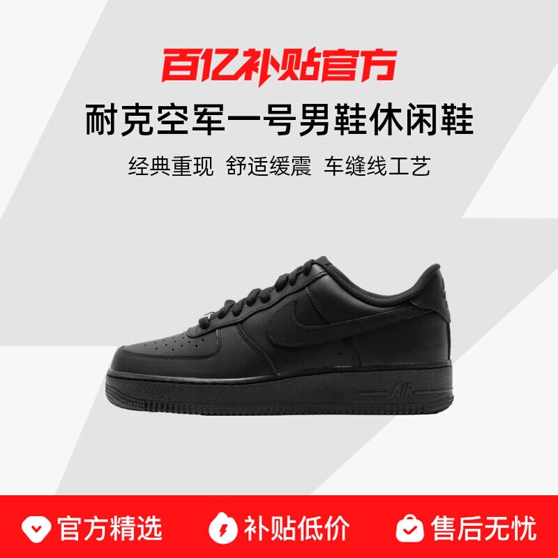 NIKE耐克空军一号男鞋黑色AF1板鞋AIR FORCE 1休闲鞋CW2288-001