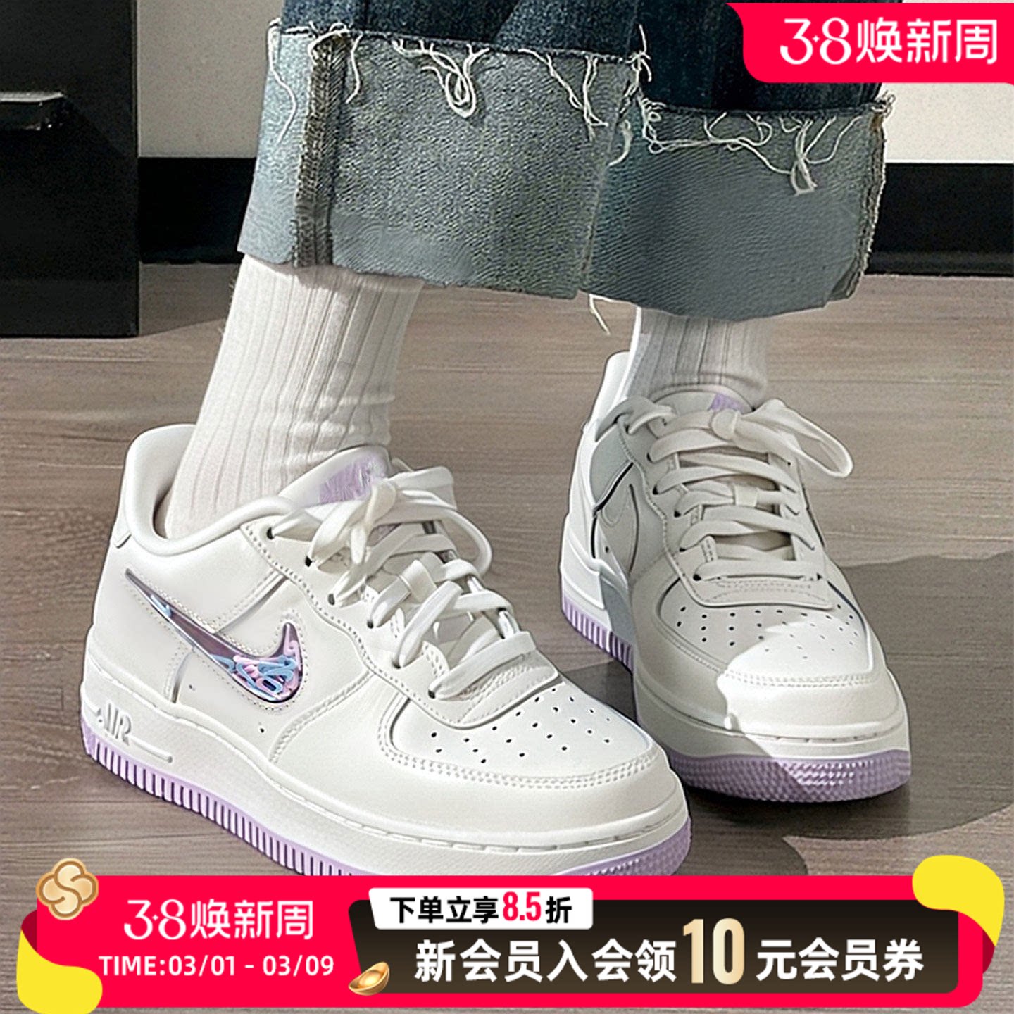 Nike耐克女鞋情人节空军一号运动鞋双钩AF1粉白色板鞋IQ9803-161