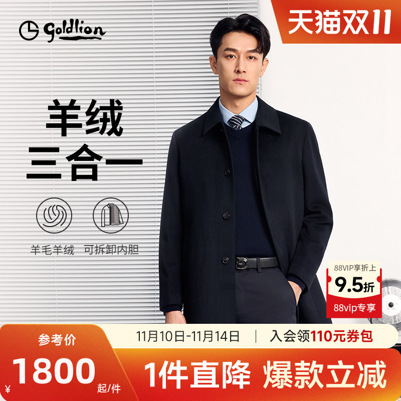 【羊绒鹅绒】金利来25秋冬新款男士毛呢大衣羽绒内胆三合一外套男